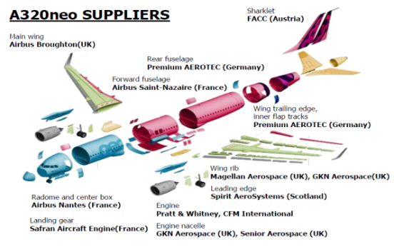 Ngoài Airbus và Boeing, nhiều tập đoàn đóng vai trò “đầu tàu” trong chuỗi cung ứng có thể kể đến: